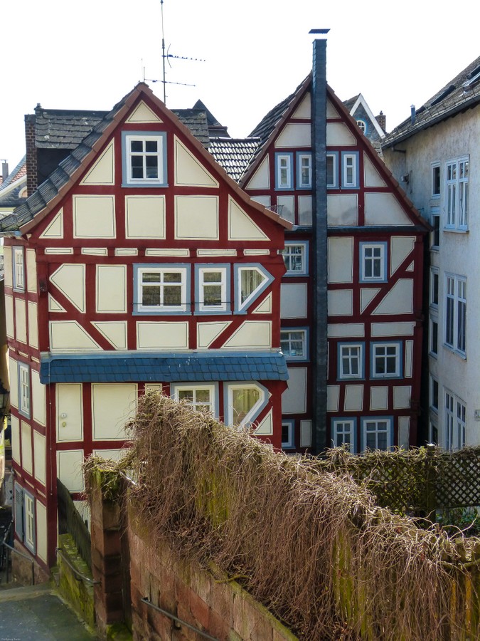 Viele der kleinen Häuser geben sehr schöne Beispiele für die von ihren Besitzern oft in liebevoller Kleinarbeit renovierten Gebäude der Marburger Altstadt (Oberstadt).
